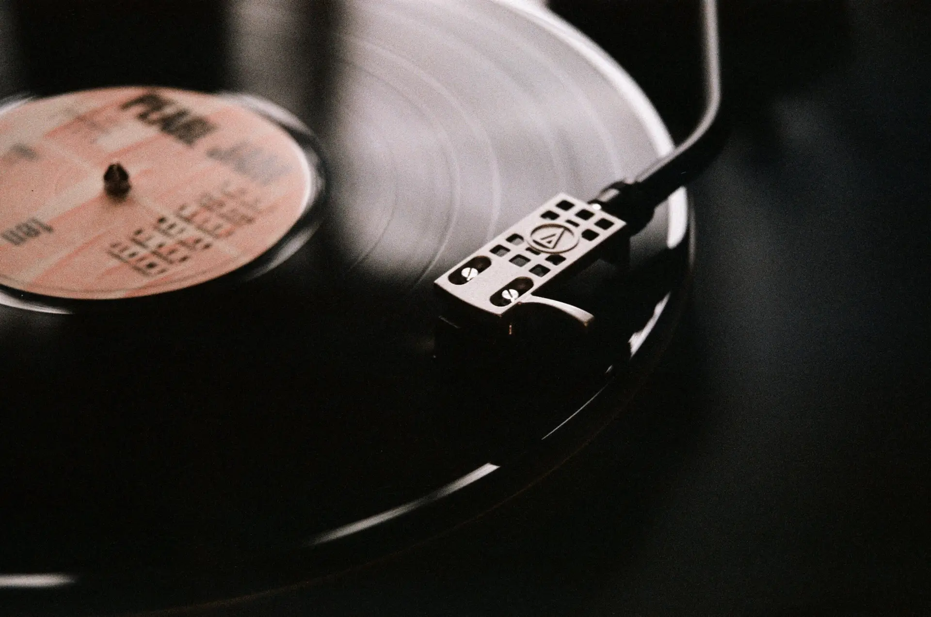 Papier, Stift, diverse Instrumente, ein Plattenspieler.